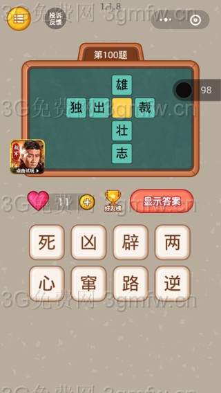 微信全民猜字第100題答案_微信小程序全民猜字答案第100題 ... [更多詳細]