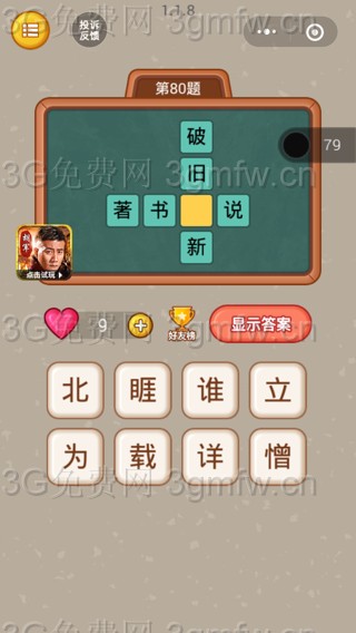 微信全民猜字第79題答案_微信小程序全民猜字答案第79題 ... [更多詳細]