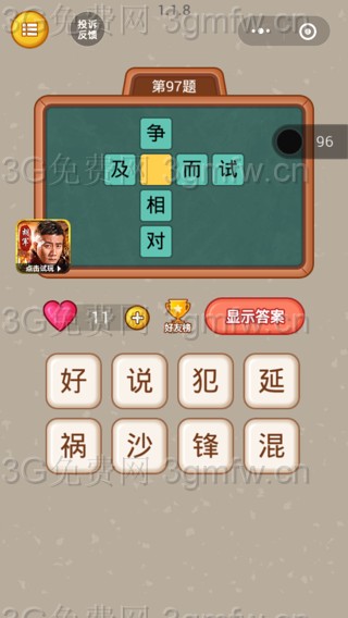 微信全民猜字第97題答案_微信小程序全民猜字答案第97題 ... [更多詳細]