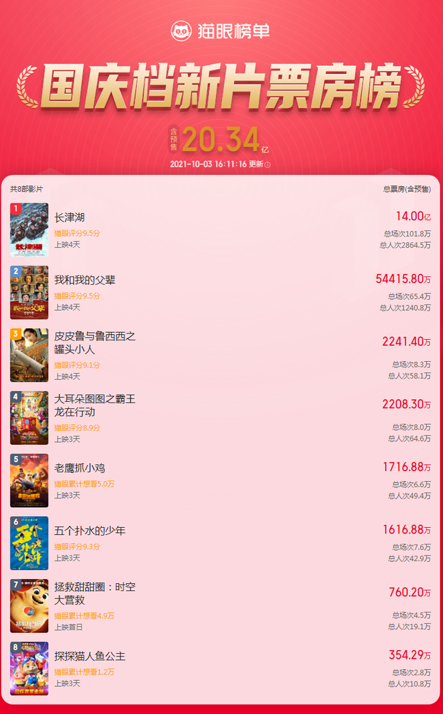 《長津湖》成影史國慶檔票房冠軍 總票房超19.56億 ... [更多詳細]