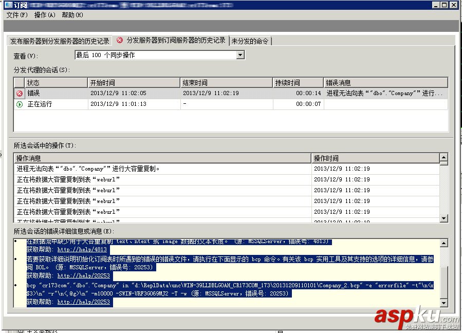 sql server2005進程無法向表"dbo"."xxx"進行大容量復制(錯誤號: MSSQL_REPL20037) ... [更多詳細]