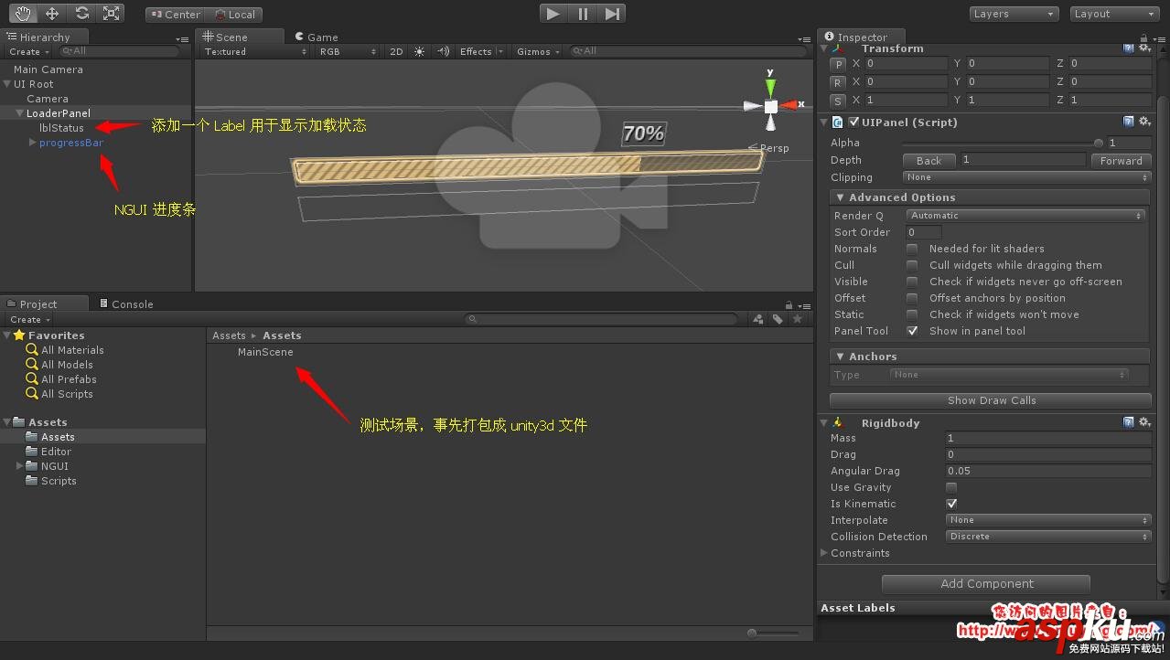 Unity3D 使用 WWW 加載場景并顯示進度條 ... [更多詳細]