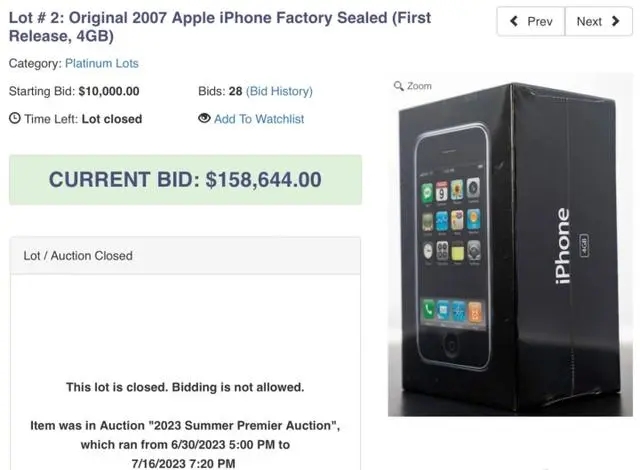 打破世界紀錄!初代未拆封iPhone拍出113萬 ... [更多詳細]