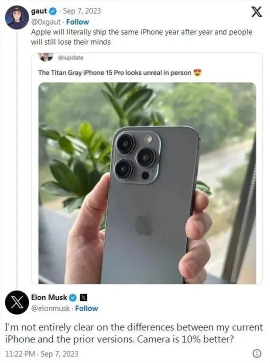 馬斯克稱iPhone換代毫無新意:現在的iPhone和之前的版本有什么不同? ... [更多詳細]