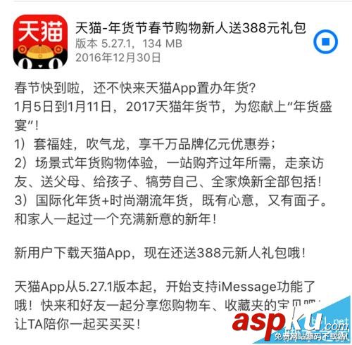 2017年天貓年貨節怎領取iMessage50元年貨券? ... [更多詳細]
