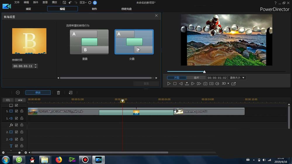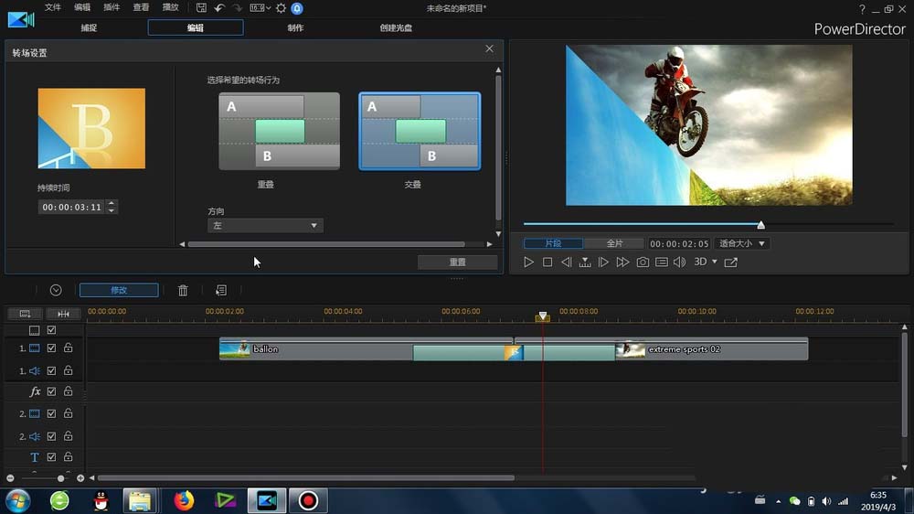 威力導演怎么給素材添加繞底部中心逆時針旋轉轉場效果? ... [更多詳細]