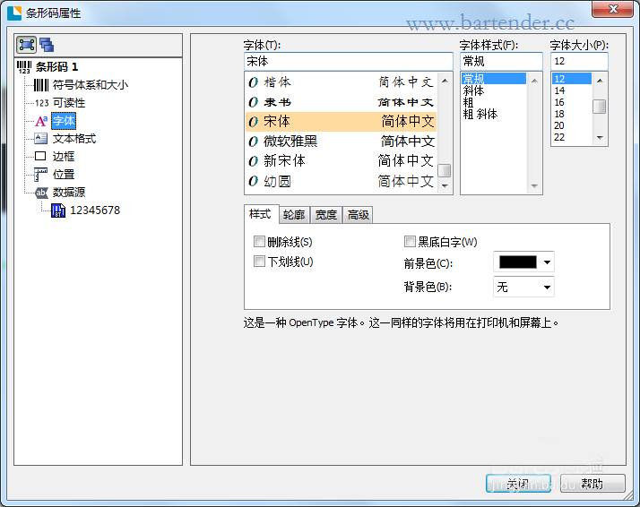BarTender條碼打印怎么設置字體? ... [更多詳細]