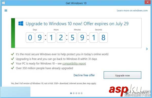 微軟在Win7/8.1 GWX上加入免費升級倒計時:快更新Win10 ... [更多詳細]