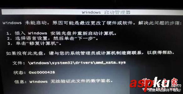Win7系統(tǒng)啟動(dòng)恢復(fù)界面提示無(wú)法驗(yàn)證amdxata.sys數(shù)字簽名的原因及解決方法圖文教程 ... [更多詳細(xì)]