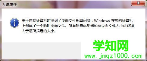 Win7電腦系統如何解決開機時提示“由于啟動計算機時出現了頁面文件配置問題” ... [更多詳細]