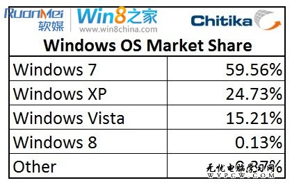 Win8消費者預覽版市場份額為0.13% ... [更多詳細]