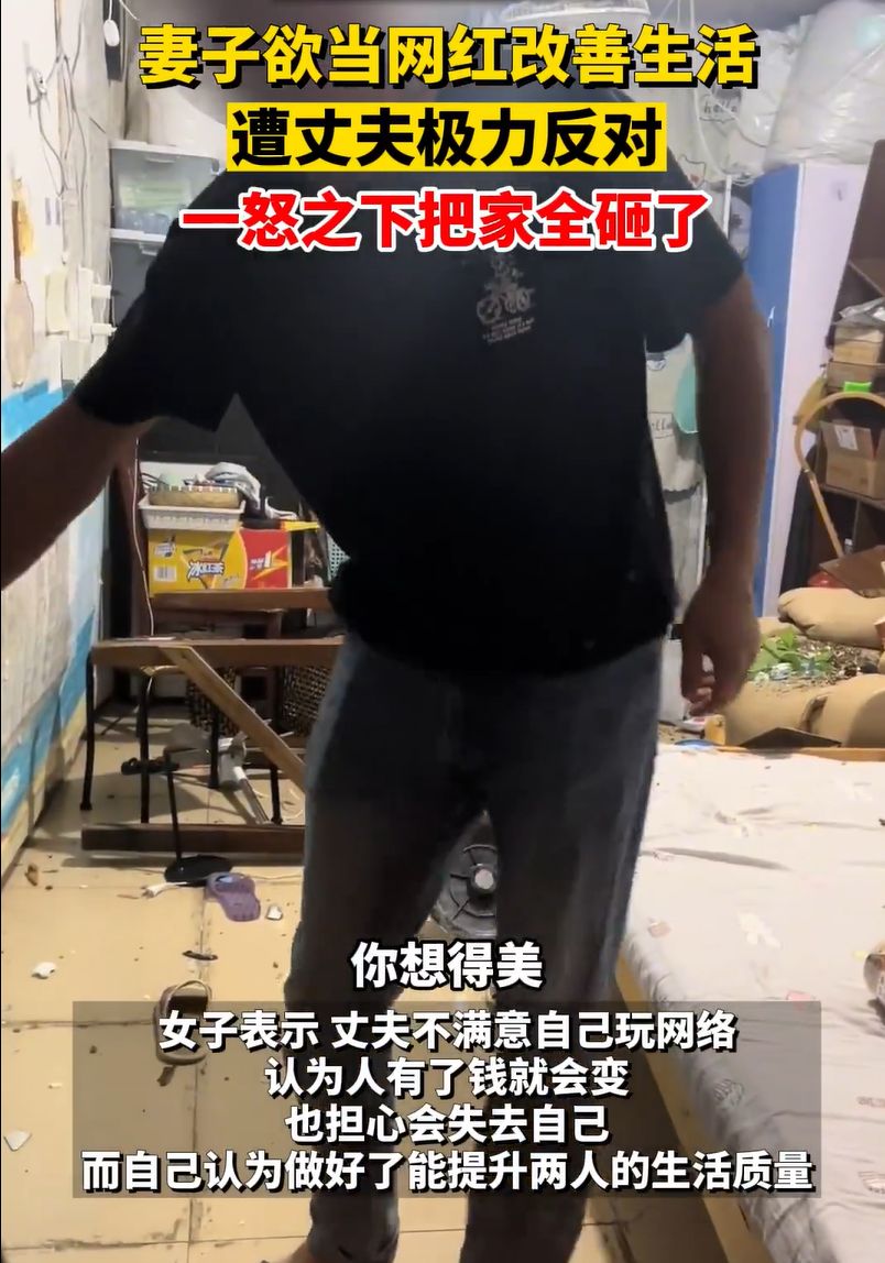 丈夫反對(duì)妻子成網(wǎng)紅把家全砸了:有錢(qián)了就會(huì)變壞! ... [更多詳細(xì)]