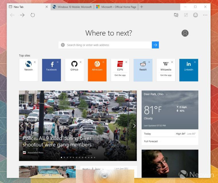 Win10 10120預(yù)覽版Edge瀏覽器新增新標(biāo)簽頁特性 ... [更多詳細(xì)]
