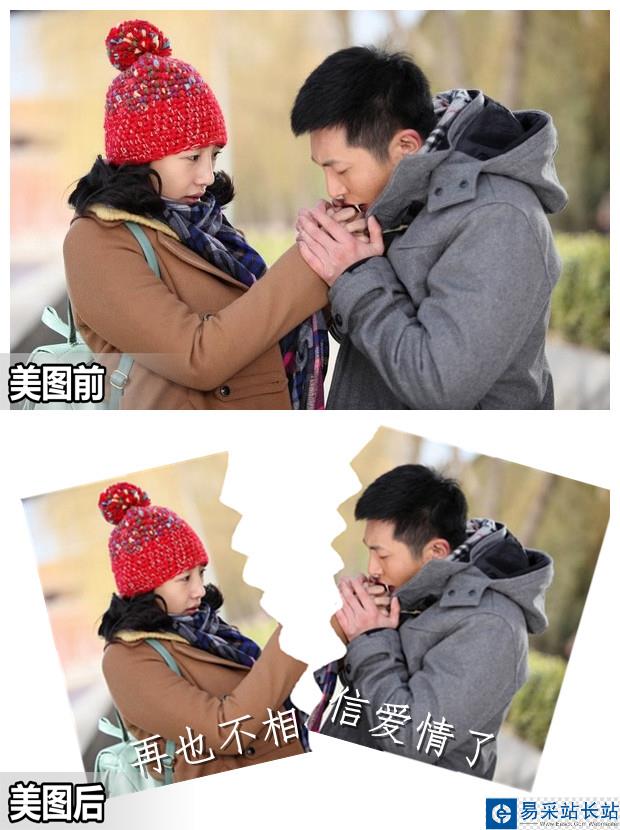 美圖秀秀教你將經典情侶照制作出撕裂效果 ... [更多詳細]