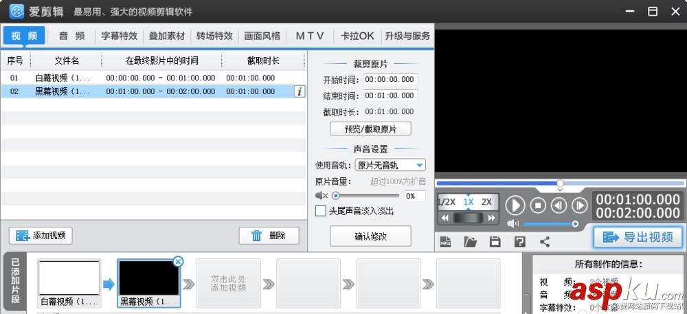 愛剪輯怎么給視頻制作黑白老電影效果? ... [更多詳細]