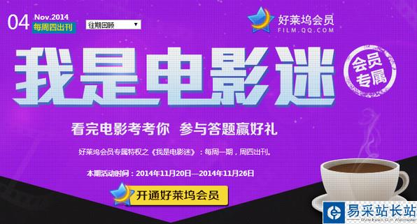 11月20日騰訊視頻好萊塢會員我是電影迷 答題贏好禮詳情活動詳 ... [更多詳細]