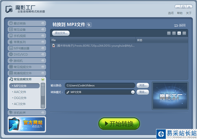 魔影工廠如何將音頻格式轉換成MP3格式 ... [更多詳細]