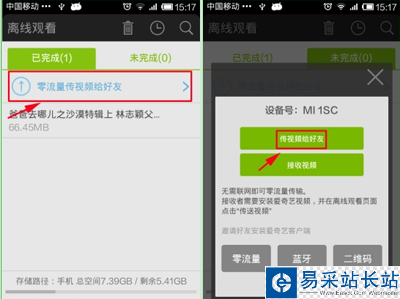 愛奇藝手機客戶端零流量將已經下好的視頻傳給好友 ... [更多詳細]