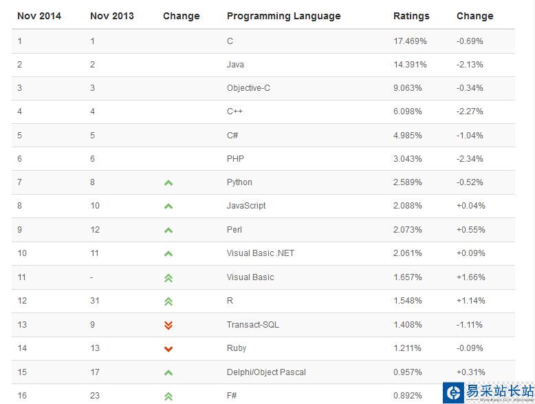 TIOBE 2014年11月編程語言排行榜 ... [更多詳細]
