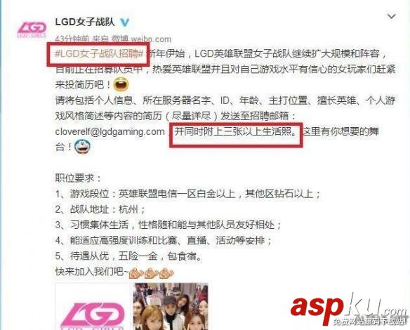 LOL戰隊LGD女子戰隊招人要求附上生活照 網友不買賬 ... [更多詳細]