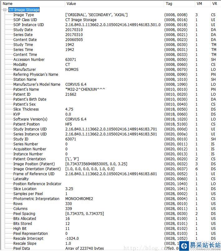 python 讀取DICOM頭文件的實例 ... [更多詳細]