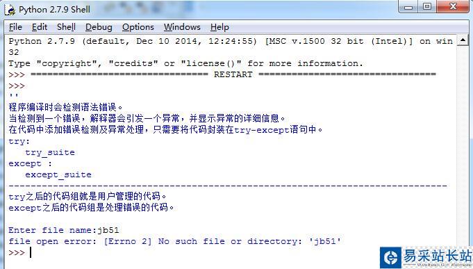 Python中的錯誤和異常處理簡單操作示例【try-except用法】 ... [更多詳細(xì)]