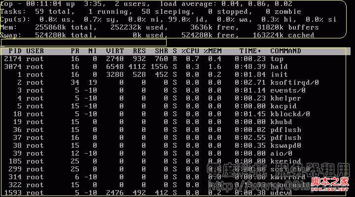 CentOS中使用top命令查看CPU詳細圖解 ... [更多詳細]