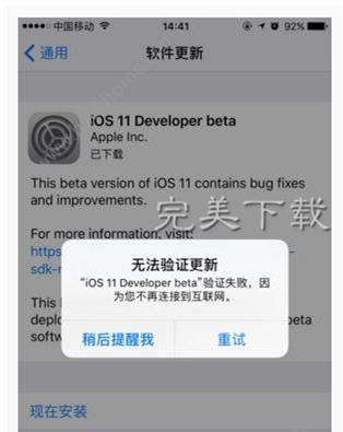 ios11 beta1提示“無法驗證更新”的原因以及處理方法介紹 ... [更多詳細]