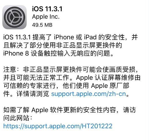 iOS 11.3.1發布,解決iPhone 8換屏沒反應的問題 ... [更多詳細]