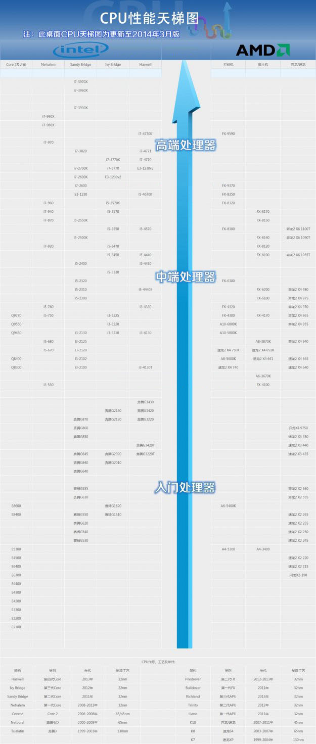 CPU天梯圖2014最新版:2014桌面CPU天梯圖3月篇詳解 ... [更多詳細]