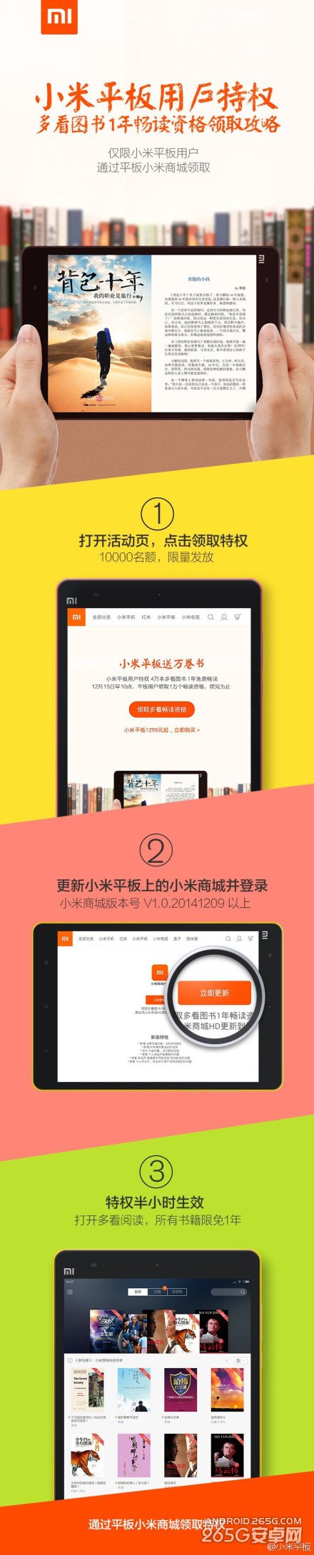 小米平板活動細則: 免費領取4萬本多看圖書暢讀1年(1萬個名額) ... [更多詳細]