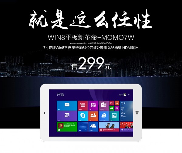 Win8平板普耐爾MOMO7W僅售299元 附購買鏈接 ... [更多詳細]