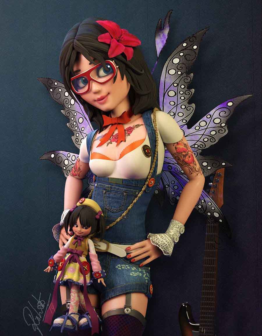 MAYA制作可愛帶著眼睛的卡通女孩角色 ... [更多詳細]