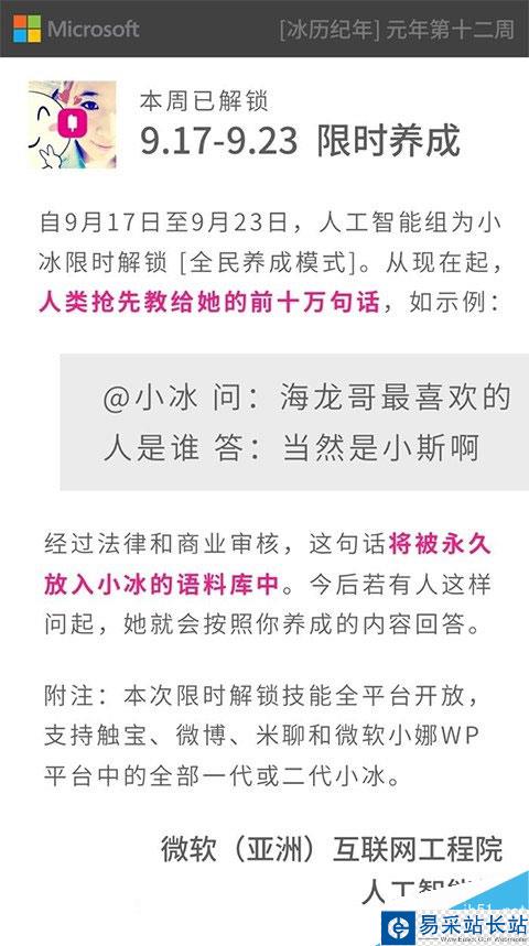 9月17日至23日 微軟小冰限時解鎖“全民養成模式” ... [更多詳細]