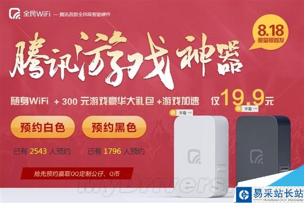 騰訊全民Wi-Fi正式開啟預約(8月18日限量首發) 售價19.9元支持 ... [更多詳細]