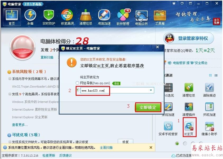 QQ電腦管家如何鎖定電腦主頁(以鎖定hao123為例) ... [更多詳細(xì)]