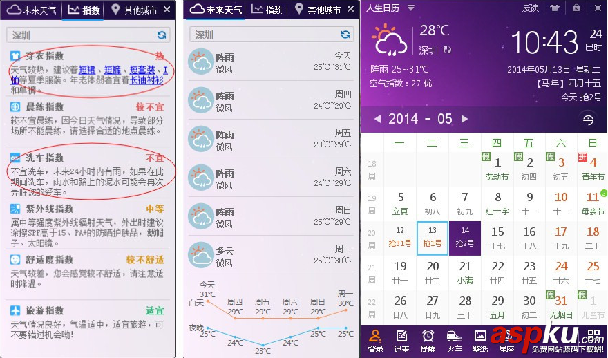 人生日歷生活指數/天氣預報功能使用教程 ... [更多詳細]