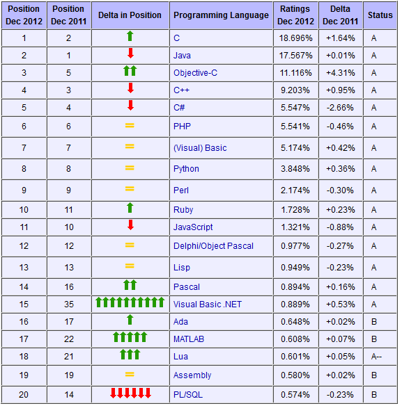 2012年12月編程語言排行榜:C、Java 和 Objective-C 依然穩居前三甲 ... [更多詳細]