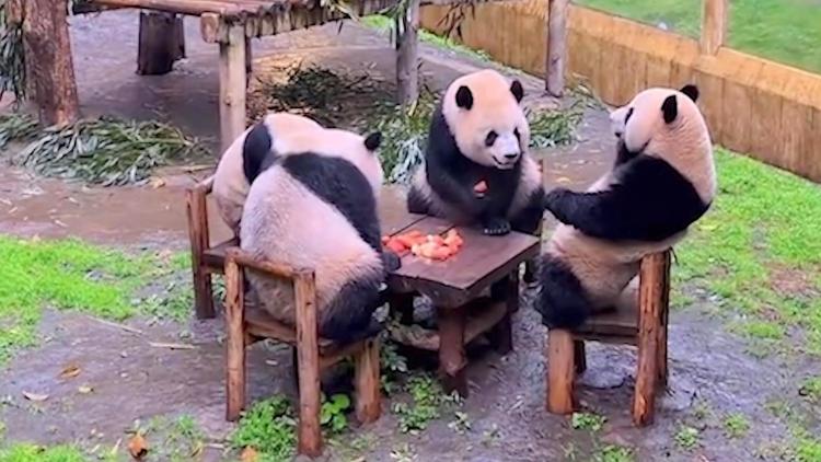 大熊貓吃筍整出了扛炮筒的架勢(shì) 熊