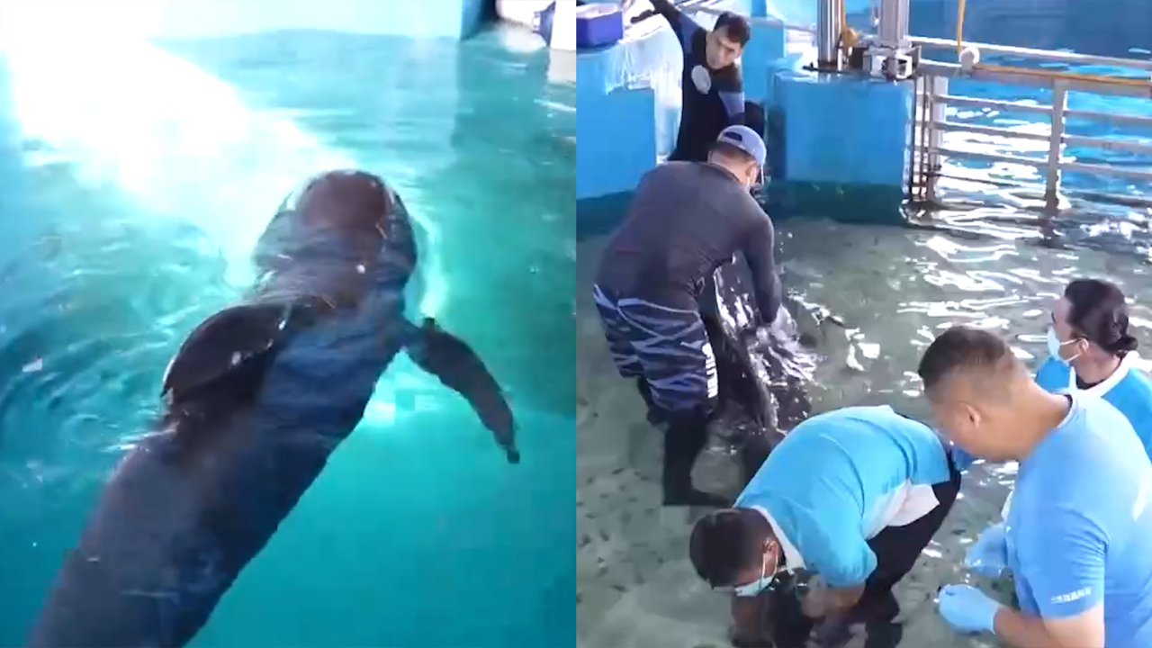 潛水員下水喂食時(shí)被大魚咬頭 引發(fā)