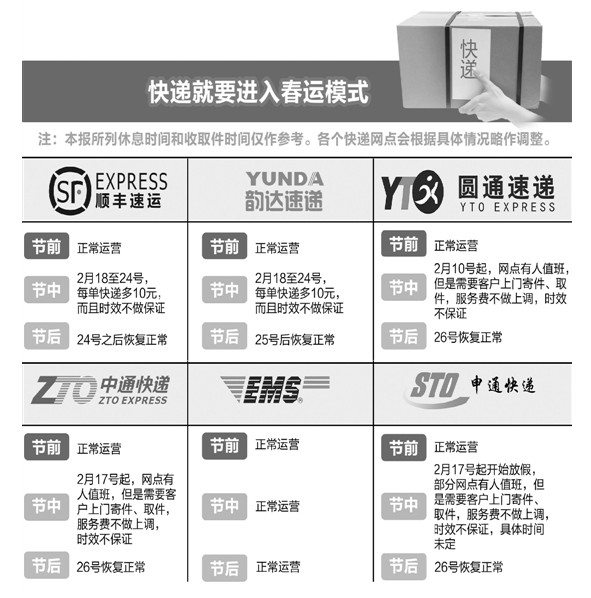 大多數快遞公司即將進入過年模式:11日前不收不送 ... [更多詳細]