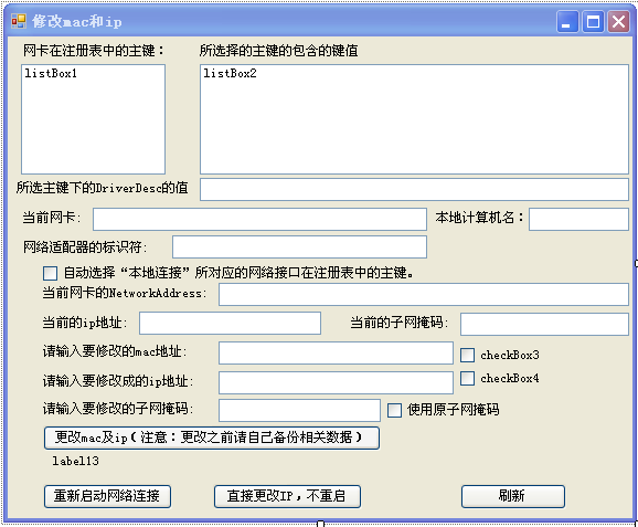 修改注冊表中"本地連接"的Ip和網卡地址(C#) ... [更多詳細]