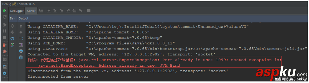啟動tomcat時 錯誤: 代理拋出異常 : java.rmi.server.ExportException: Port already in use: 1099的解決辦法 ... [更多詳細]
