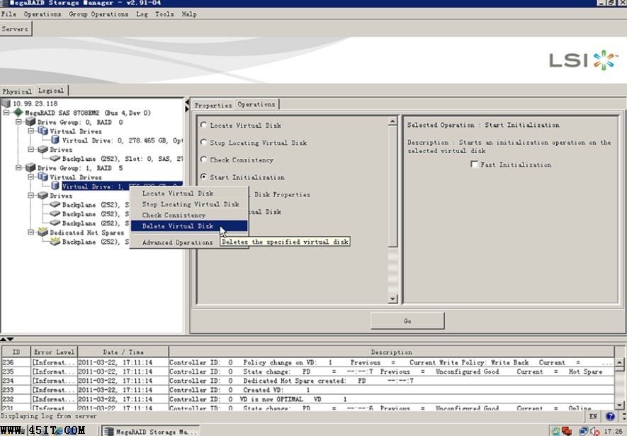 LSI 8708E SAS RAID卡管理軟件MSM中如何刪除陣列? ... [更多詳細]