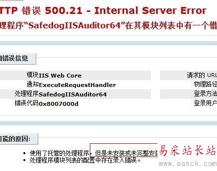 win2008 R2安裝網站安全狗提示HTTP 錯誤 500.21的解決方法 ... [更多詳細]
