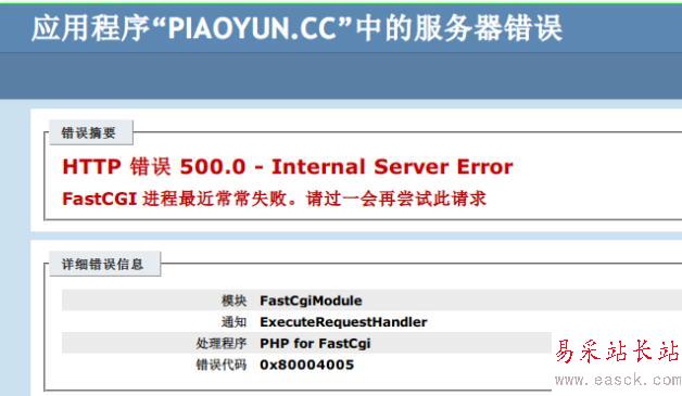 Win2008 r2 IIS7.5出現FastCGI進程最近常常失敗。請過一會再嘗試此請 ... [更多詳細]