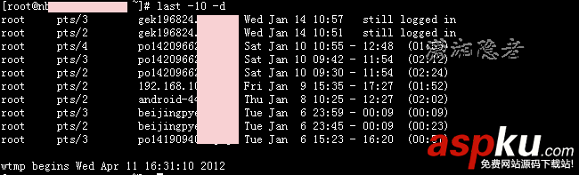 Linux常用命令last的使用方法詳解 ... [更多詳細(xì)]
