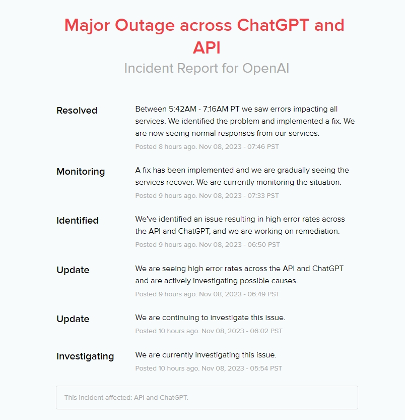 OpenAI發生嚴重故障 ChatGPT和API服務超過1小時無法正常使用 ... [更多詳細]