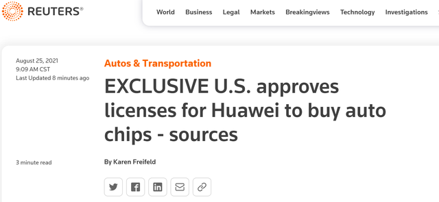美批準向華為出售汽車芯片:允許向華為出售汽車芯片 ... [更多詳細]