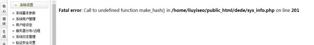 織夢 Fatal error: Call to undefined function make_hash() in /dede/sys_info.php on ... [更多詳細]